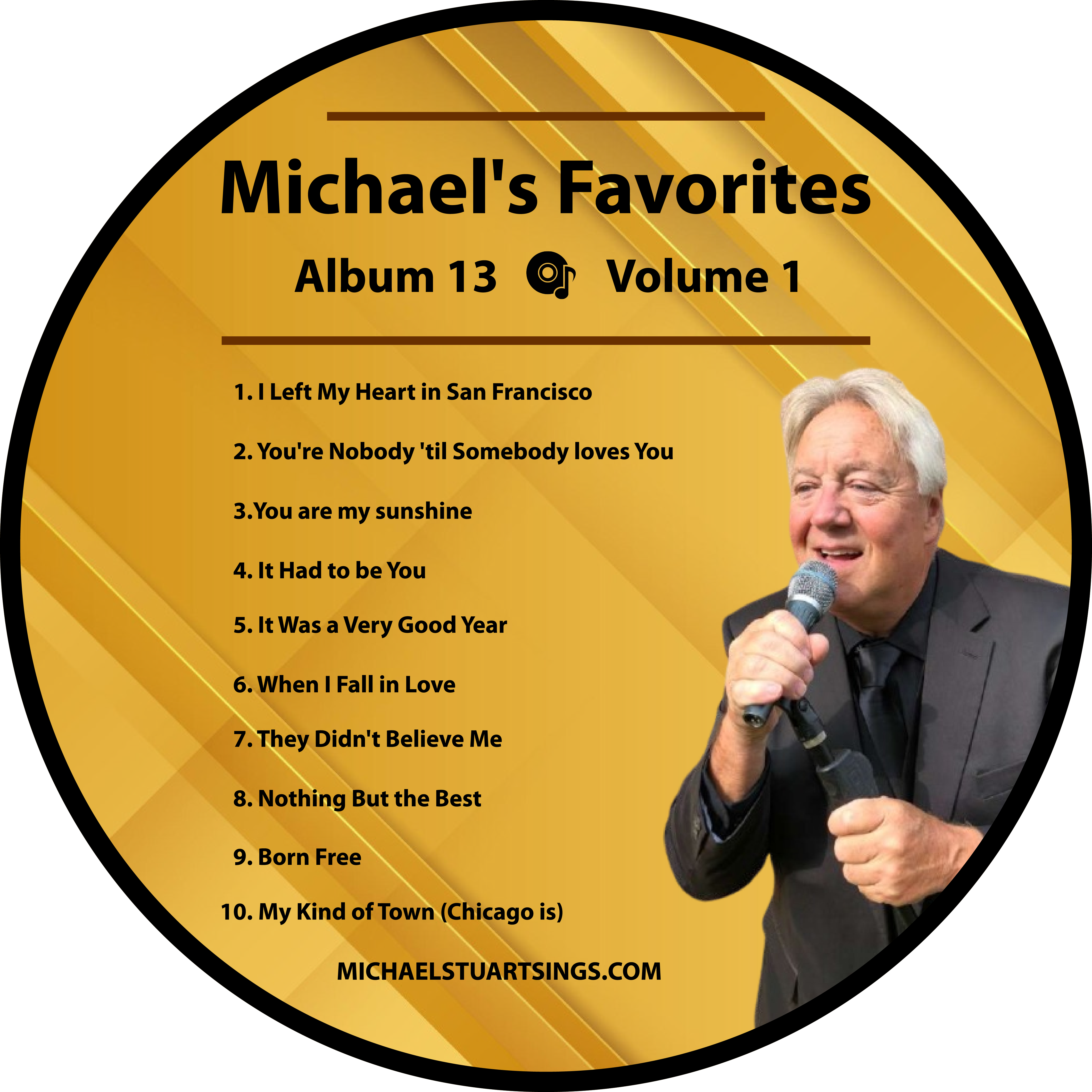 The following ten studio songs are Michael’s Thirteen Studio Album – Volume 1 I Left My Heart In San Francisco https://michaelstuartsings.com/wp-content/uploads/2022/11/clip-ad-songs-I-LEFT-MY-HEAR-IN-SAN-FRANCISCO.wav You’re Nobody ’til Somebody Loves You https://michaelstuartsings.com/wp-content/uploads/2022/11/clip-ad-songs-loud-YOURE-NOBODY-TILL-SOMEBODY-LOVES-YOU-1.wav You Are My Sunshine https://michaelstuartsings.com/wp-content/uploads/2022/11/clip-ad-songs-YOU-ARE-MY-SUNSHINE.wav It Had to be You. https://michaelstuartsings.com/wp-content/uploads/2022/11/01-_MIRACLES_-CD-3.mp3 It Was a Very Good Year https://michaelstuartsings.com/wp-content/uploads/2022/11/01-_Memories_-CD-33.mp3 When I Fall in Love https://michaelstuartsings.com/wp-content/uploads/2023/04/01-_MIRACLES_-CD-3.wav They Didn’t Believe Me https://michaelstuartsings.com/wp-content/uploads/2024/06/They-Didnt-Believe-Me.wav Nothing But the Best https://michaelstuartsings.com/wp-content/uploads/2024/06/Nothing-But-the-Best.wav Born Free https://michaelstuartsings.com/wp-content/uploads/2024/03/WhatsApp-Audio-2024-03-10-at-9.12.07-PM.mp3 My Kind of Town (Chicago is) https://michaelstuartsings.com/wp-content/uploads/2024/06/My-Kind-of-Town-Chicago-is-new.wav Follow
